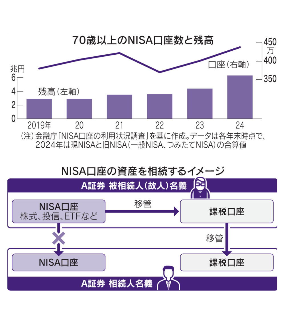 うちの親も自分に相談してきて、期限が切れる旧NISAの個別株をそのままに課税口座にせず、新NISAに切り替えてくれた(実際は同価格で売って買うだけど)。 それで相続の時に上がってても取得単価は死亡時のものになる。 もちろんまだまだ元気だから、ずっと非課税で配当貰えるしね。 x.com/nikkei/status/…