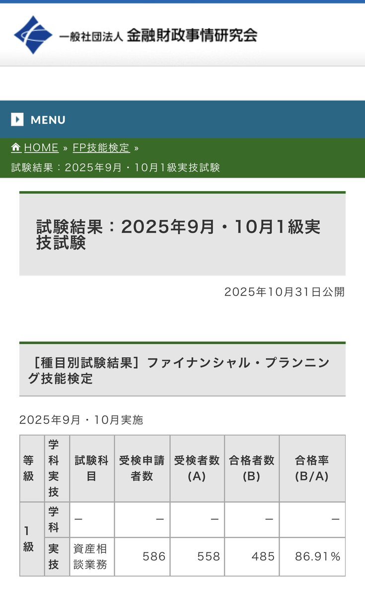 FP1級(きんざい) 実技試験 合格しました! 学科試験:5月末 (ライフプランニングと資金計画、リスク管理、金融資産運用、タックスプランニング、不動産、相続・事業承継の筆記試験) ↓ 実技試験(資産相談業務):9月末 (不動産、相続・事業承継の口頭試問) と言う流れでした。 pic.x.com/WtPgVtjlhz x.com/couplemiyano/s…